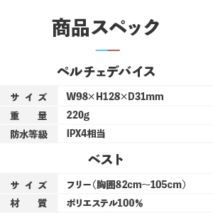 ペルチェデバイスサイズ:W98×H128×D31mm(約220g)