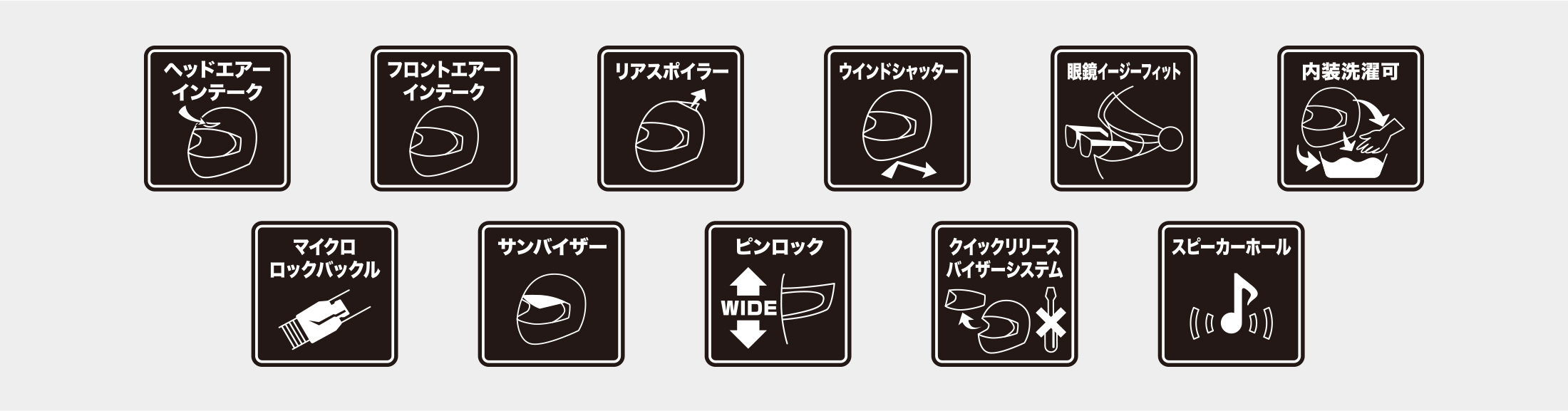- □ 視界全てに防曇効果をする“マックスビジョンピンロックシールド”を標準装備