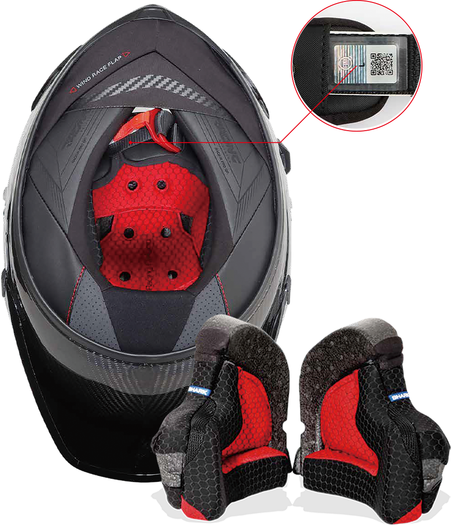 - チークパッドとインナーライナーのSHARK独自の造形技術により、高い快適さとサポートを実現。